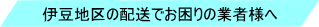 スーパーマーケット・ドラッグストア・ホテル・保養所・料理店に卸しており品質はどこにも負けない鮮度です。配送地域は箱根・湯河原・伊豆半島全域となります。詳細は配送エリアよりご確認下さい。 |
